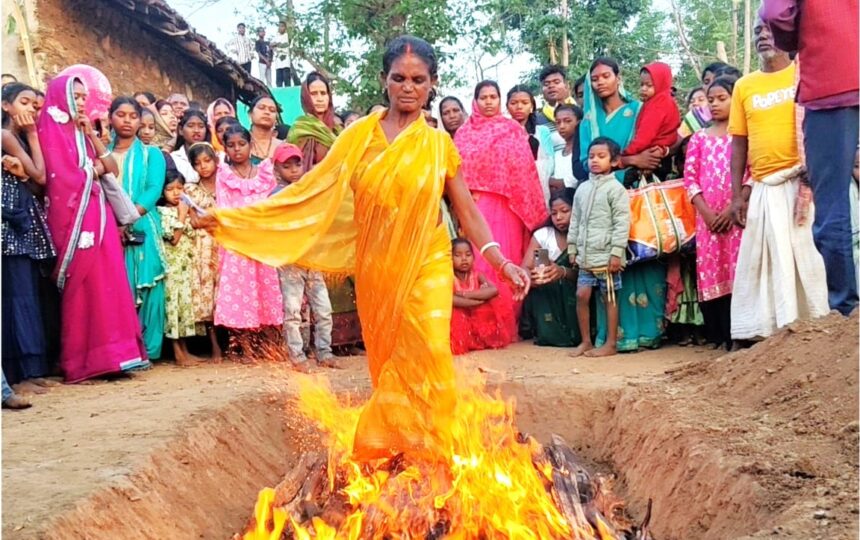 ईचागढ़ : सरायकेला-खरसावां जिले के ईचागढ़ प्रखंड अंतर्गत लाबा गांव में बुधवार को आस्था, भक्ति और तपस्या का ऐसा अद्भुत संगम देखने को मिला, जिसने हर किसी को हैरान कर दिया। चड़क पूजा के अवसर पर यहां एक महिला ने जलती व लहलहाती आग पर चलकर भगवान शिव के प्रति अपनी अटूट श्रद्धा का प्रदर्शन किया, वहीं उनके पति ने अपनी पीठ में लोहे का हुक घोंपकर 40 फीट ऊंचाई पर चरखी से झूलते हुए भक्ति का अनोखा उदाहरण प्रस्तुत किया।